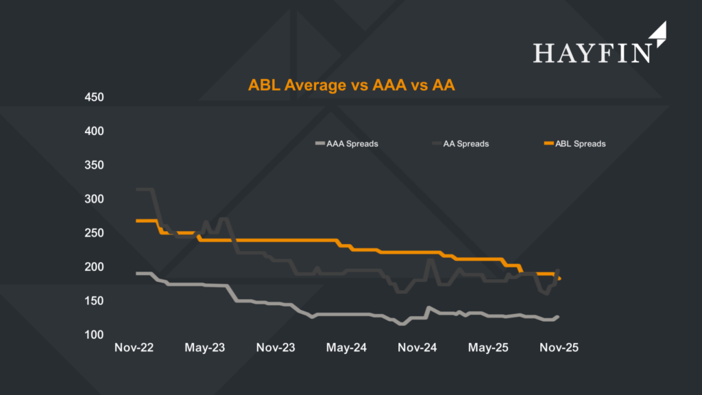 That foundation matters for ABL markets, given ABL pricing does not operate in isolation—it has tracked movements in AAA CLO spreads consistently since late 2022. The tightening cycle compressed the ABL illiquidity premium materially and signalled strong lender appetite throughout 2023–2025. The recent reversal, though modest at the AAA level, has been enough to introduce friction into ABL negotiations. Managers planning upsizes in the near term should expect a more careful conversation with lenders than they would have had three months ago.